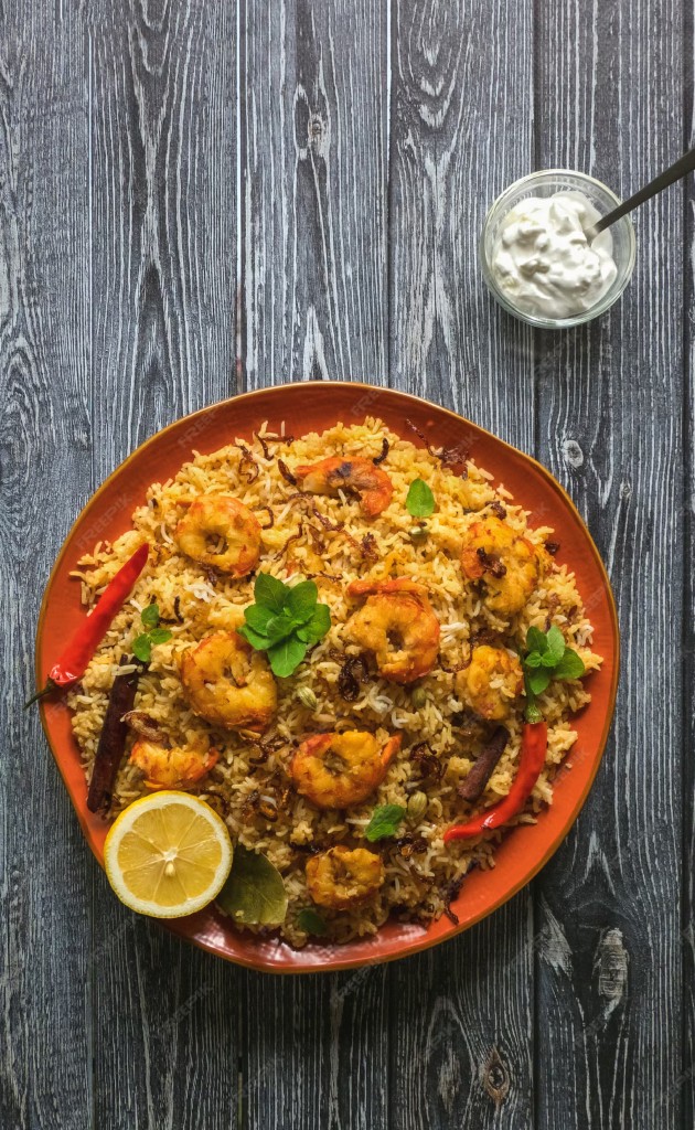 mit Hihnerbrust, Lammstreifen, Shrimps und Nissen / with chicken-breast, lamb-strips, shrimps and nuts