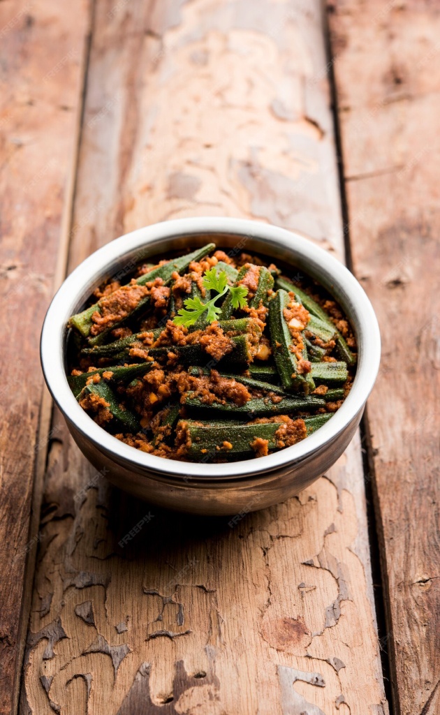 Frisches indisches Okra-Gemdise in kraftiger Sauce / auch vegan